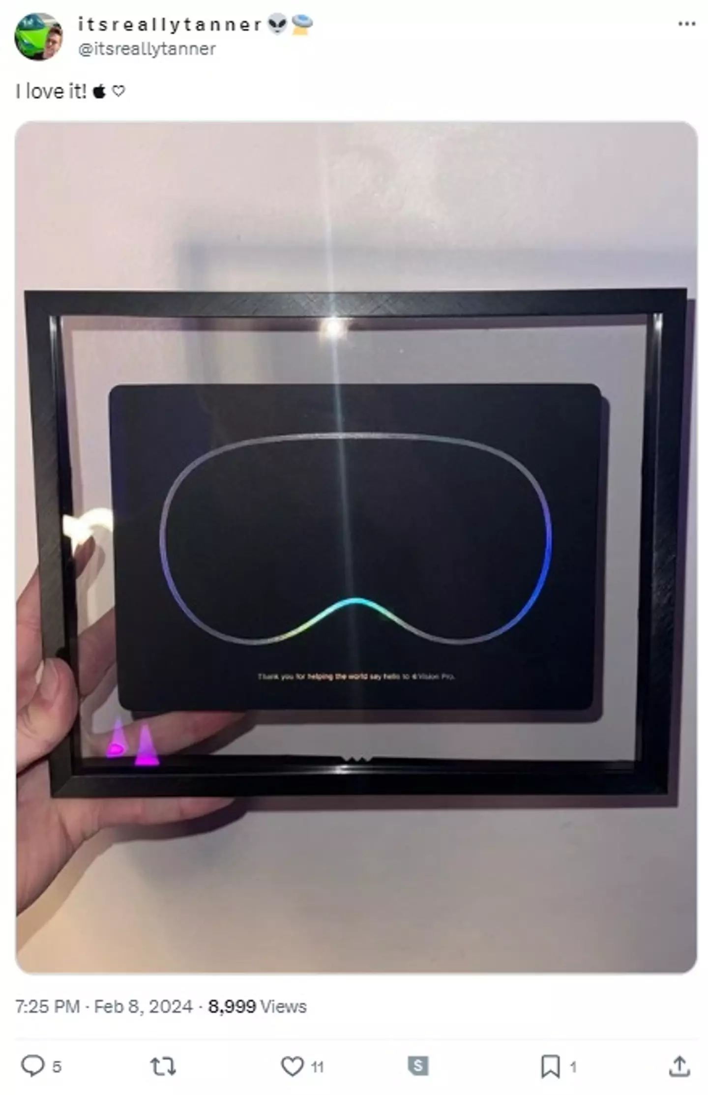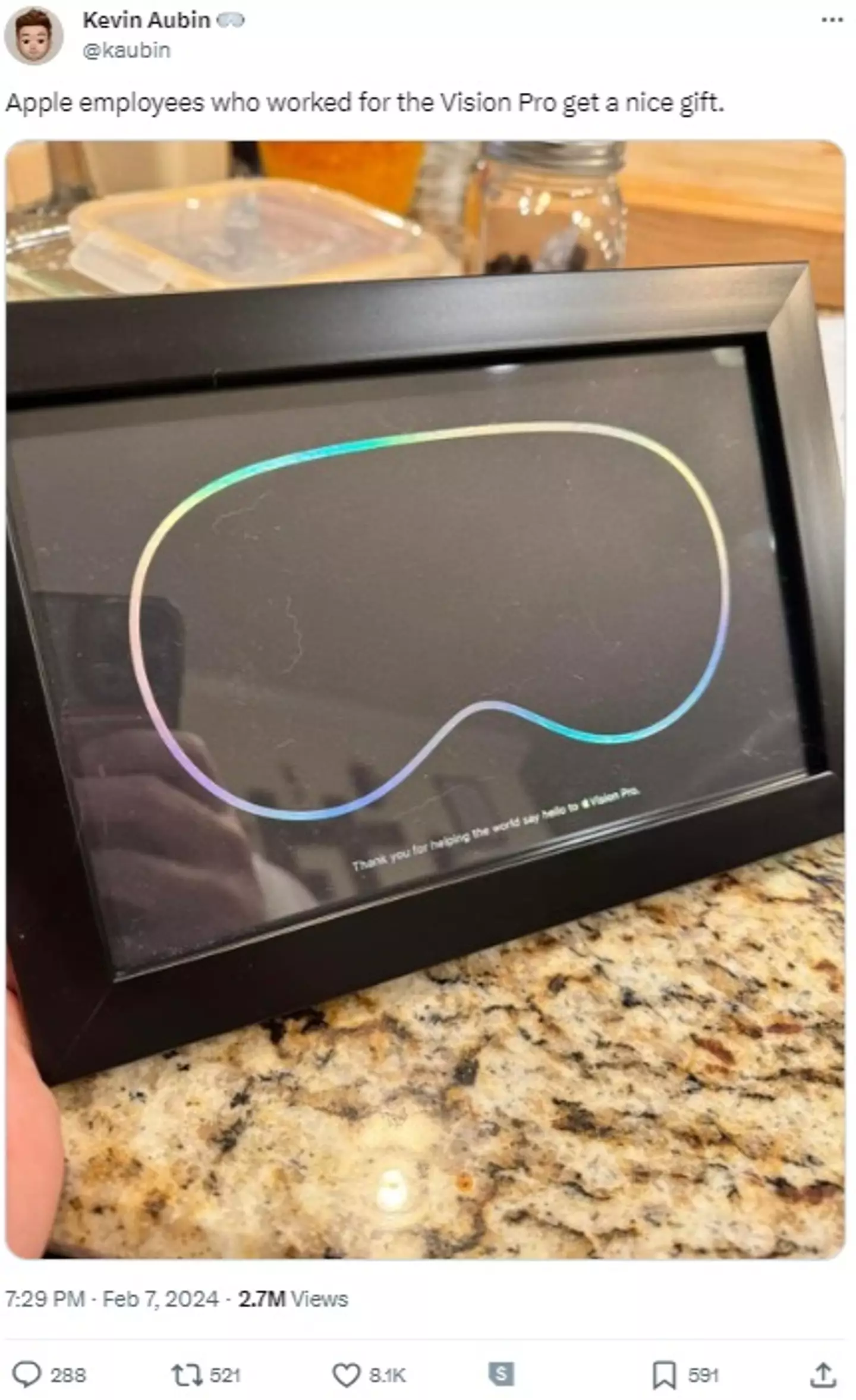 As one popular comment under Aubin's post read: "Is that a picture/picture frame? Wouldn't a nice gift be ... a Vision Pro?"