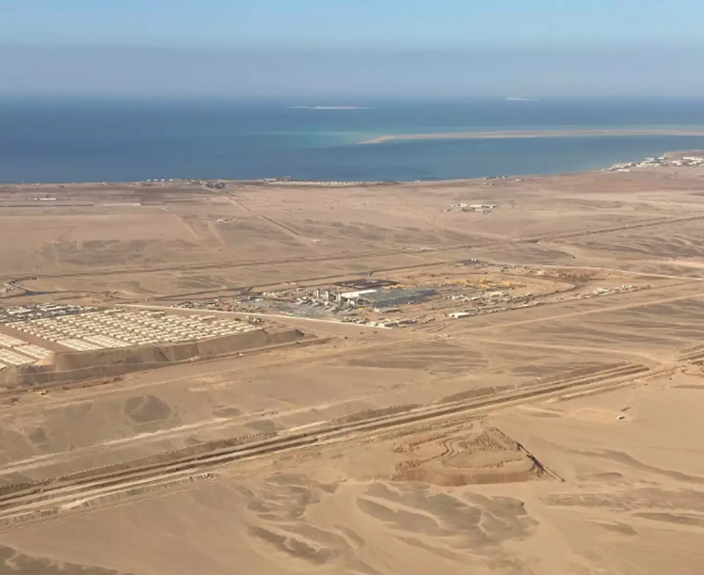 Work on The Line seems to be starting near the coast, and you can see the brilliant blue of the ocean in some of the photos.