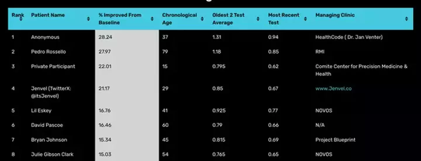 Johnson is number seven on the 'relative change' leaderboard - he's 46 years old, but has reported having the 'heart of a 37-year-old', which is pretty good going.
