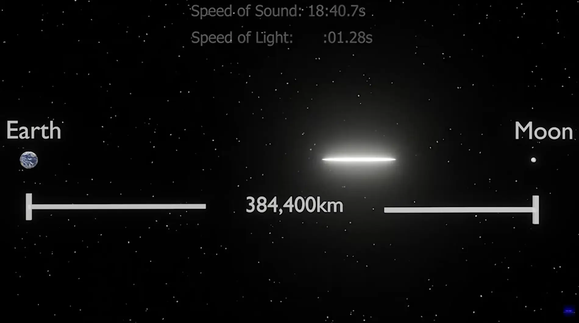 To demonstrate the speed of light, the video shows how quickly it travels from the Earth to the Moon and back - a huge distance that it absolutely zips across.