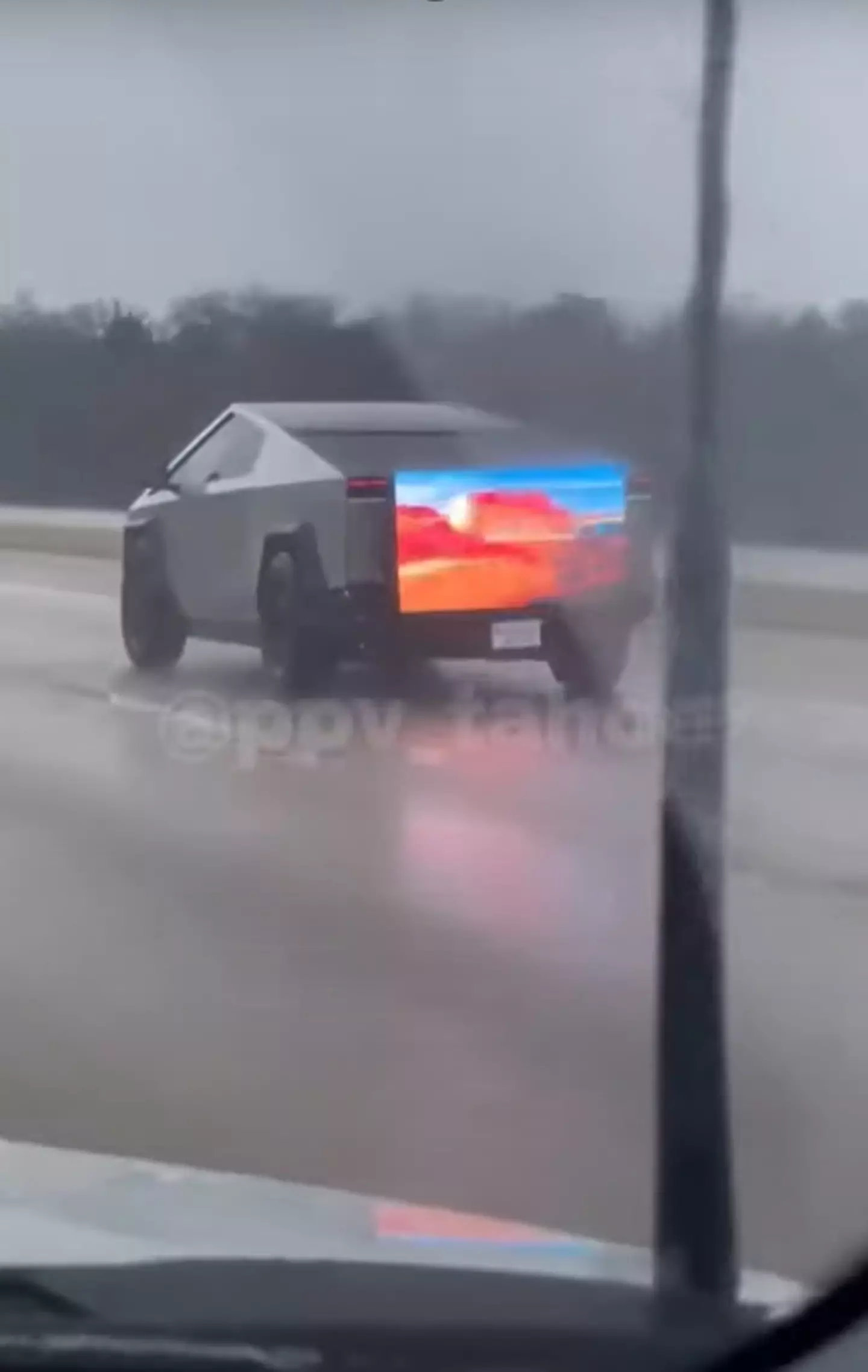 A viral video this week has shown just this, after the truck was spotted on a Texan highway with what looks like a TV rigged up to its rear bumper.